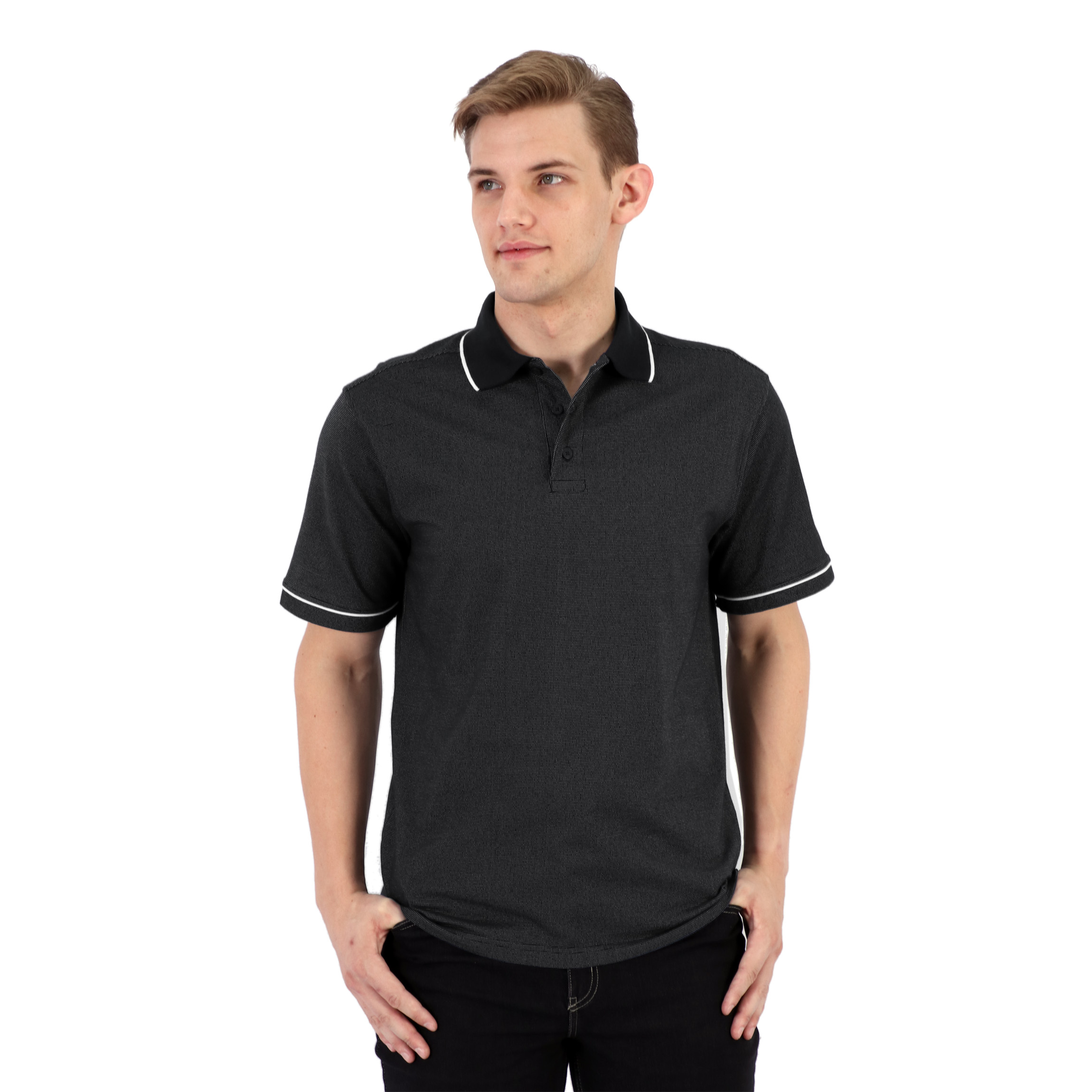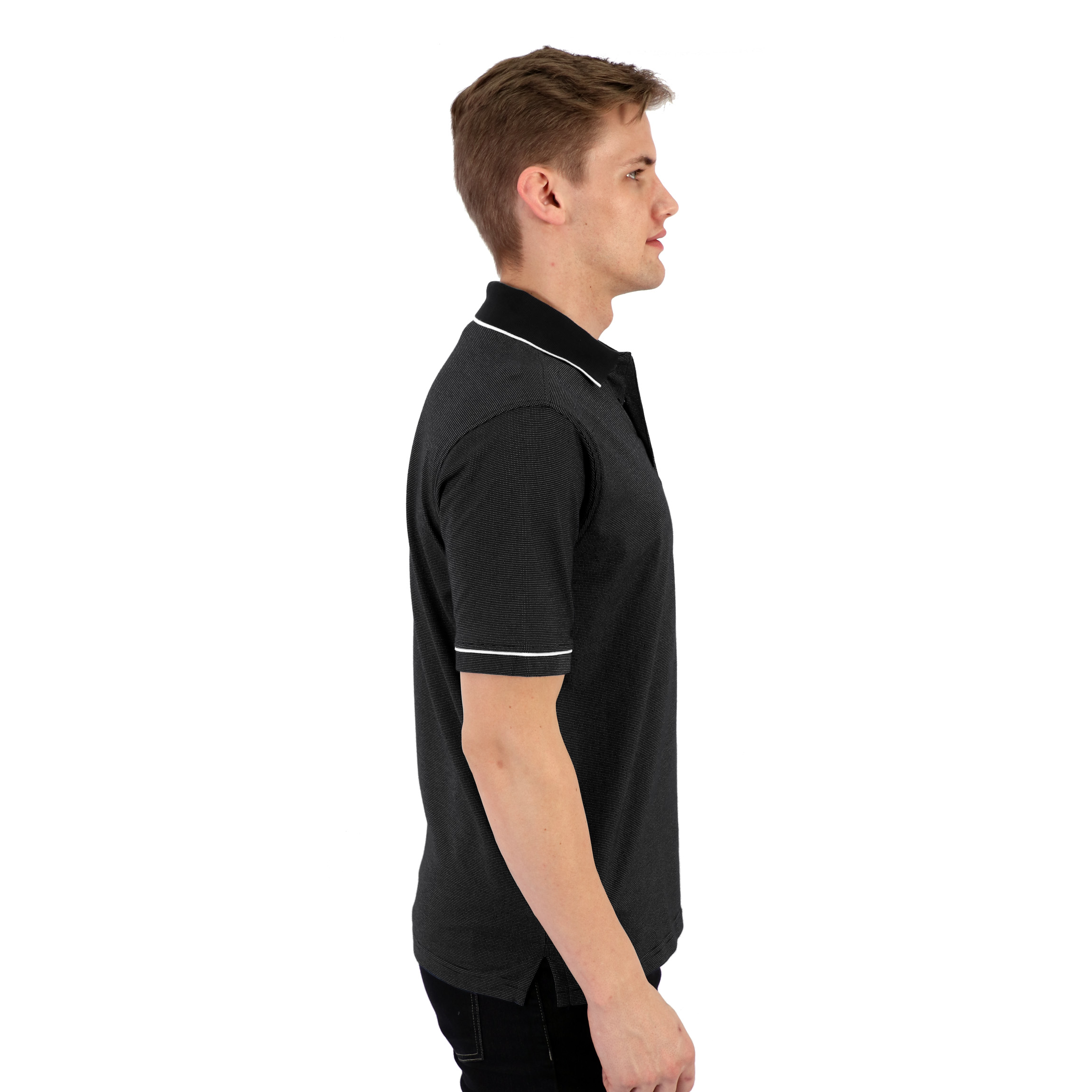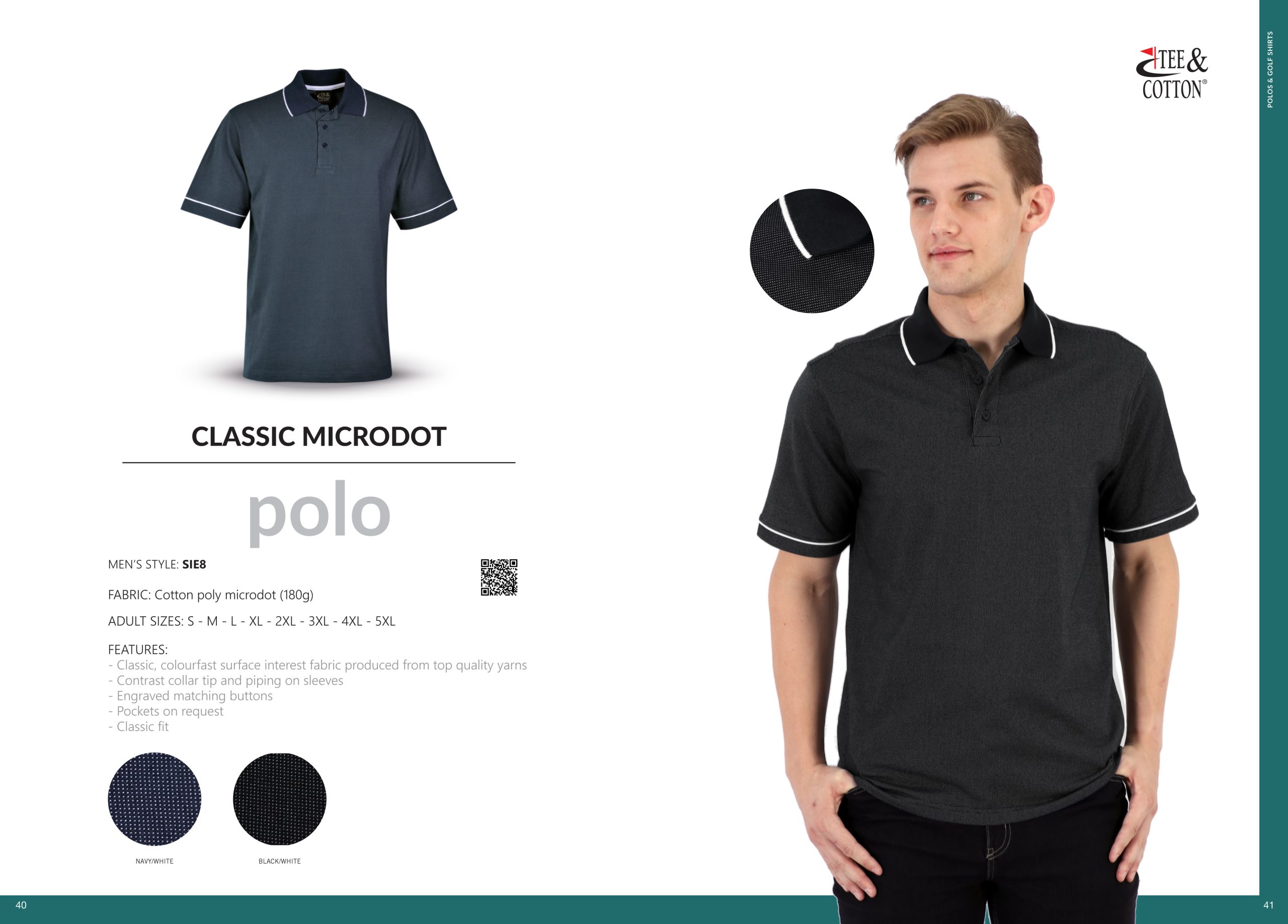 This polo is made from high quality cotton poly microdot fabric.