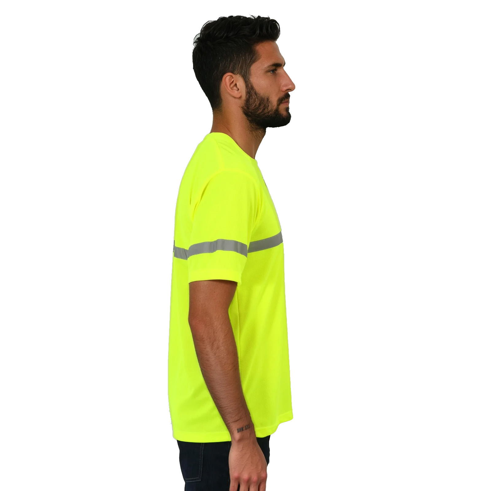 Make sure that you are seen in our high visibility t-shirt with reflective tape and moisture wicking properties. Not only could it be used for many workwear applications but also for promotional to ensure that your brand stands out.