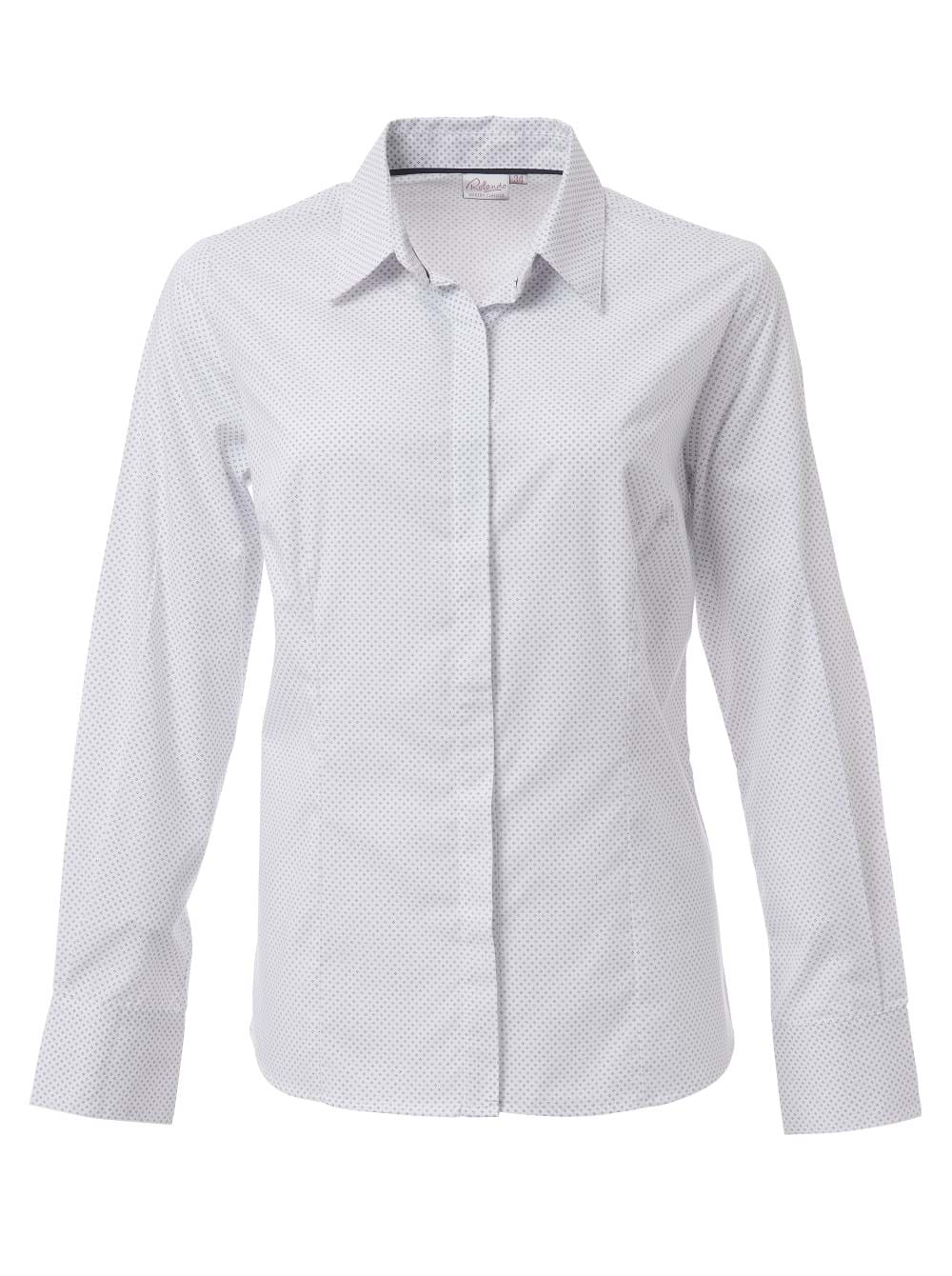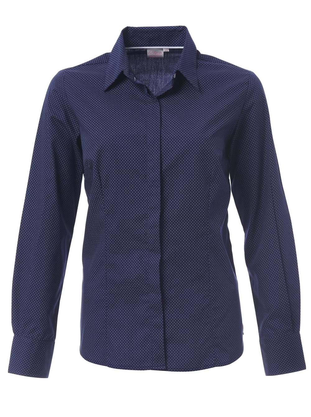 Cullinan L/S Blouse: Semi-fitted, with front and back darts, concealed front placket and side vents. Contrast piping in collar. Long sleeves with button-cuffs.